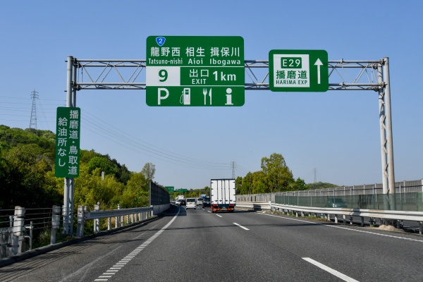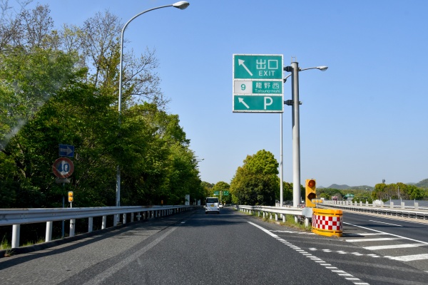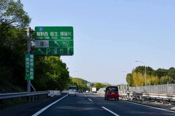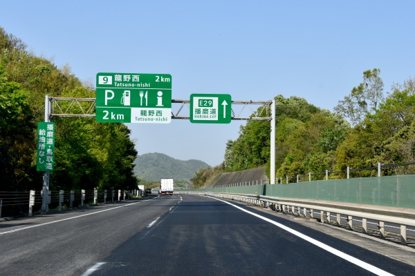 龍野西ICは県道を介してR2に接続する。R2を西に走れば相生市中心部へ向かい、東へ向かえば揖保川の周辺まで戻ることができる。
