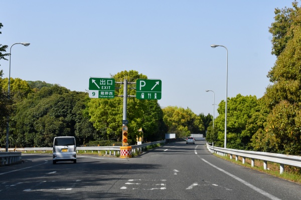 本線から分かれて少し走ったところで、ICとSAの分岐がある。一般道へすぐに向かいたい場合はここを左に分岐しよう。
