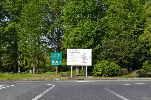 歌碑のあった方の園地からは、一般道側駐車場に出入りする通路もある。龍野西ICから山陽道に入る場合は途中でSAを利用できないので、一般道側駐車場を使うこととなる。