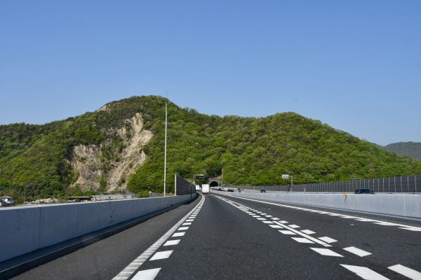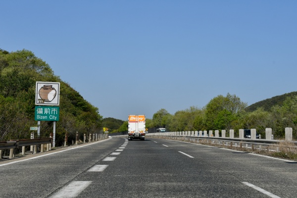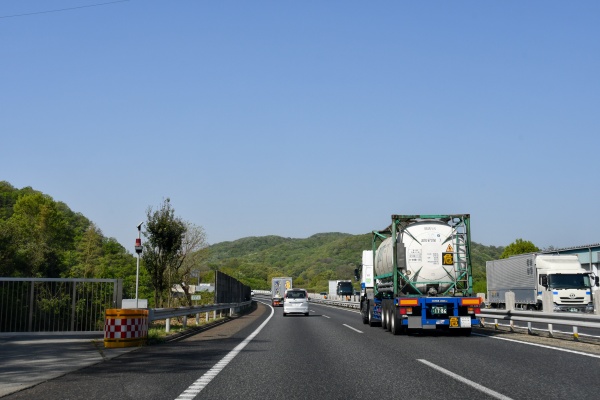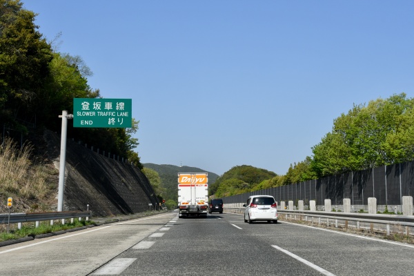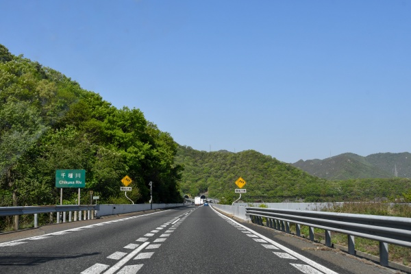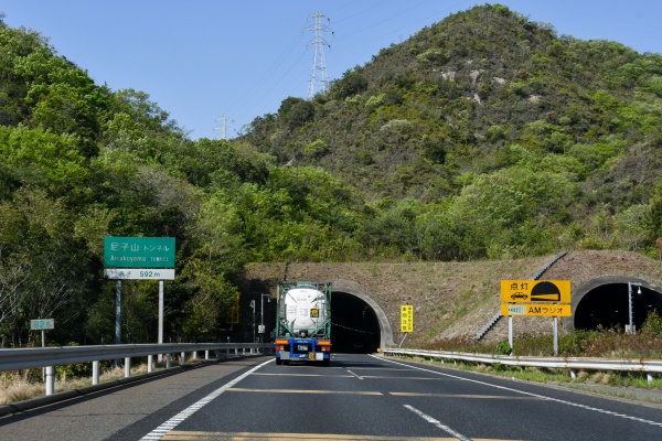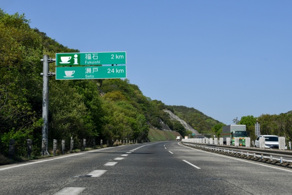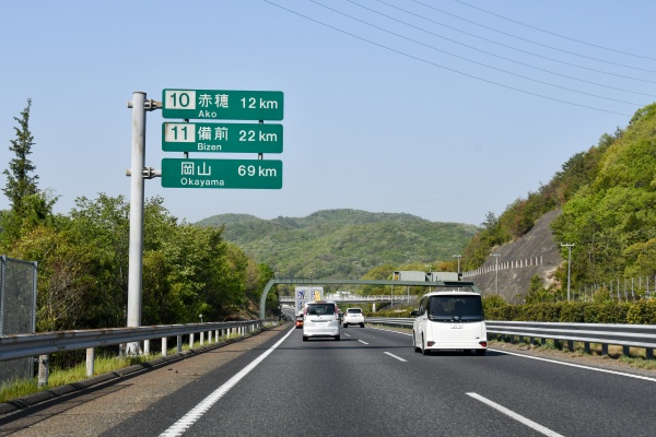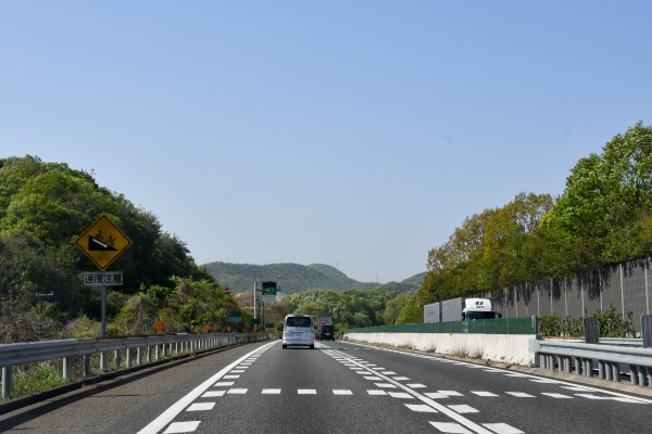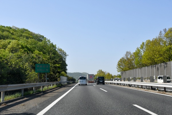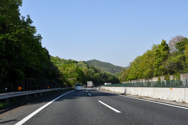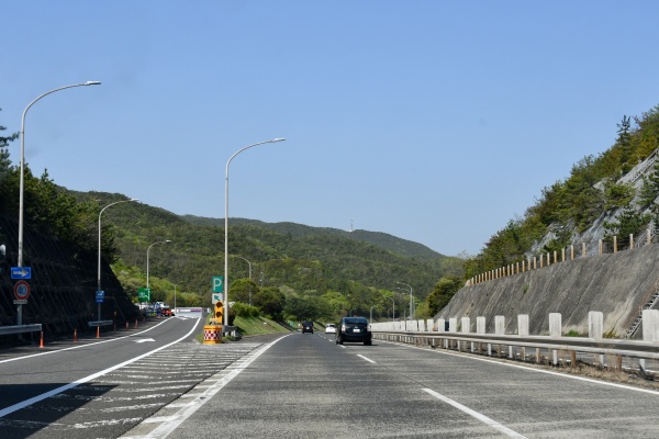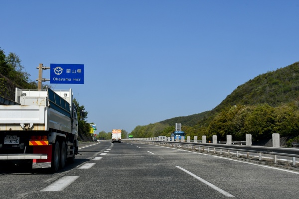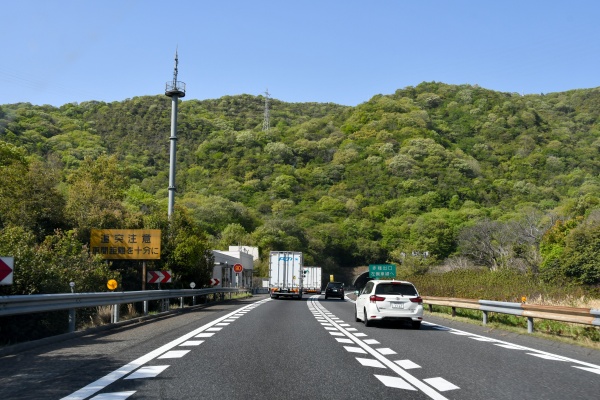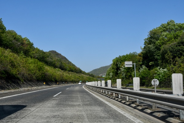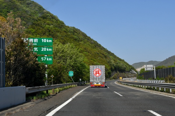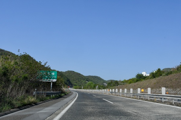 この日は朝から快晴で、瀬戸内は春から初夏へ向かう陽気の中にあった。車窓はほとんど山なのだが、本線の交通量が多いあたり幹線道路としての山陽道の役割の大きさを感じさせられる。