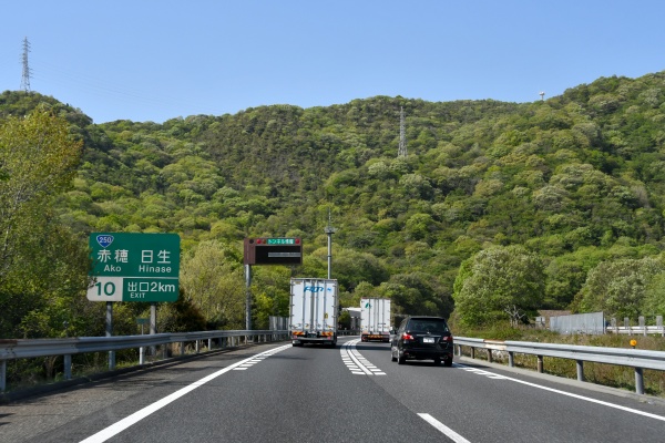 山陽道は相生市内を約7kmほどの道のりで横断しており、R2、JR山陽本線、山陽新幹線の3つの幹線道路/鉄道と交差しているのだが、市内には出口も休憩施設もまったくない。山陽道においては龍野西ICが相生市への玄関口となっている。