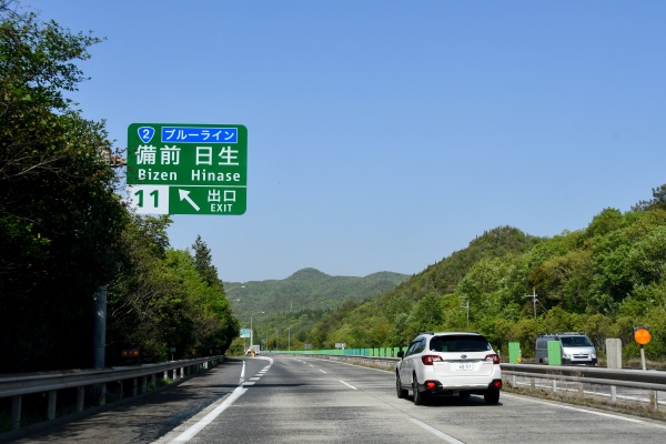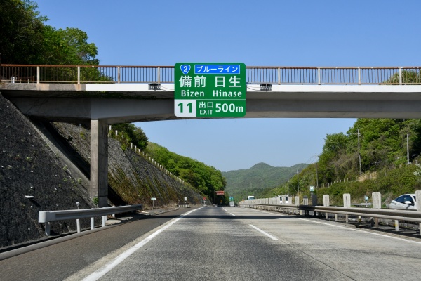備前ICのそばから県道経由で南下すれば、蕃山(しげやま)ICよりブルーラインに入ることができる。日生、牛窓方面にはこのルートを利用するのがよいだろう。
