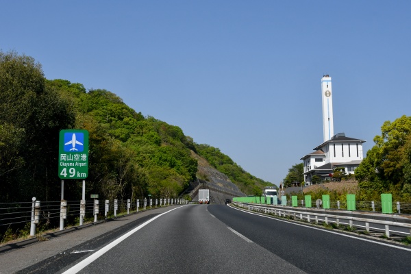岡山空港は岡山ICから15分程度の道のりで、ICからの距離でいうと岡山市街より少し離れている。