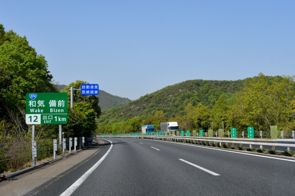備前ICからずっと下り坂が続いている。