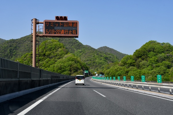 広域情報表示。サミット開催時規制の際は中国道への迂回が促される。
