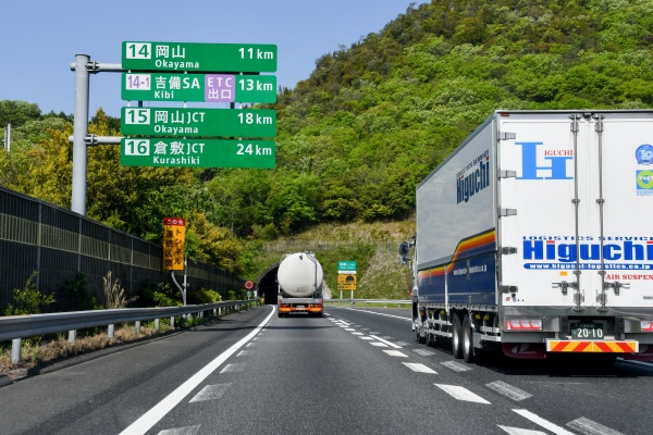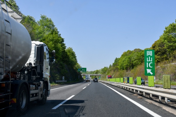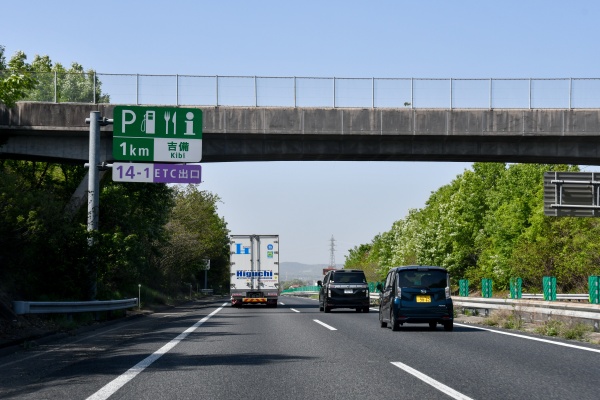 岡山ICはまもなく。次の吉備SAは1.5kmしか離れていないが、これだけ短いIC間距離でもSICが設置されているのには理由がある。