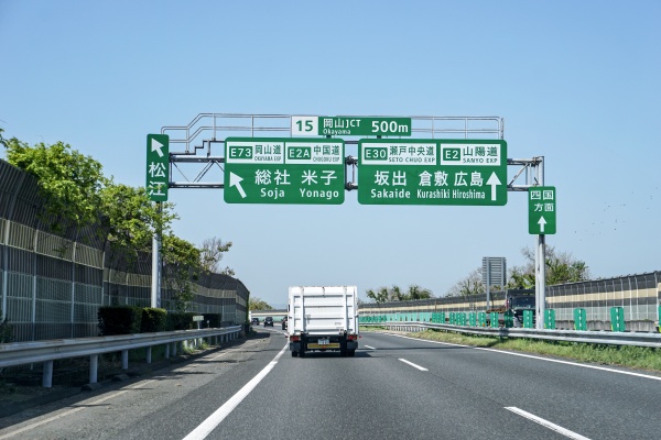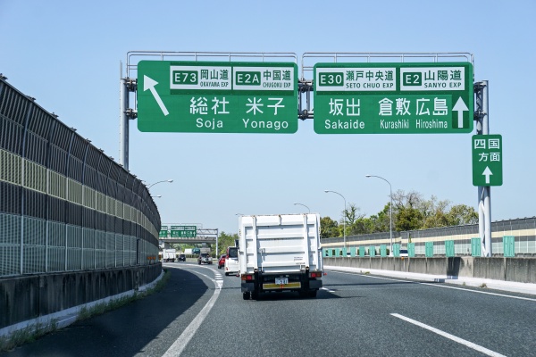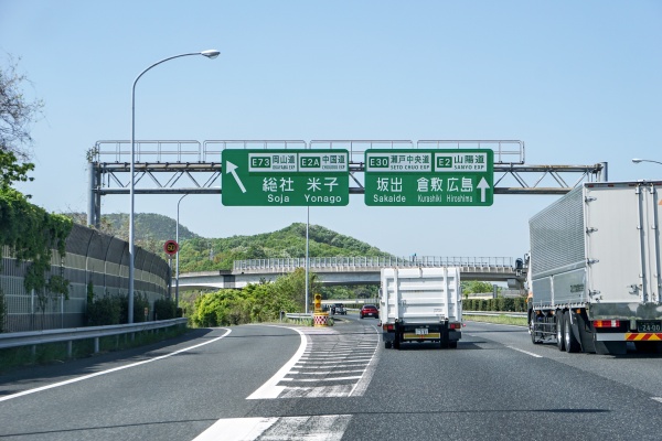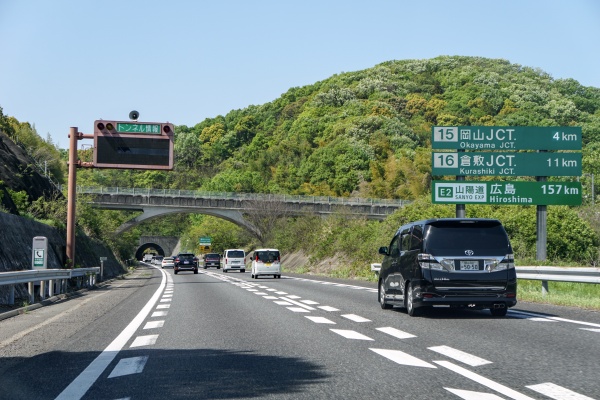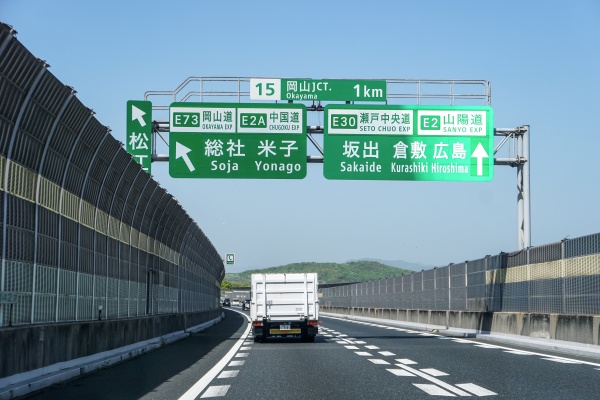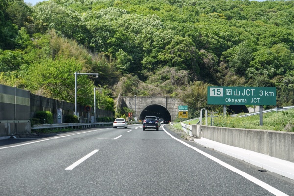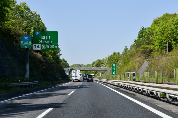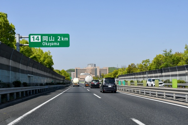 岡山もまた、四国・山陽・山陰と三方向に分岐する結節点となっている(ジャンクション自体は岡山道の分岐)。松江は岡山道→米子道方面へ、四国はこの先瀬戸中央道方面へ。
