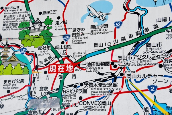 この手の地図は高速道路の延伸やSICの開通、市町村の合併で修正が入ることが多々あるが、現在地の吉備SAが消されているのでは…?