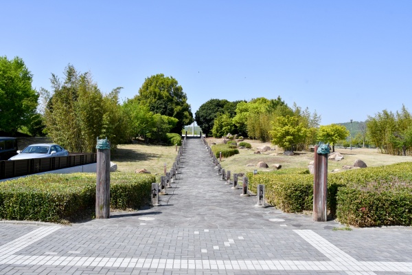 吉備SAには広大な園地が整備されている。まるで鬼ヶ城へ向かうような遊歩道…