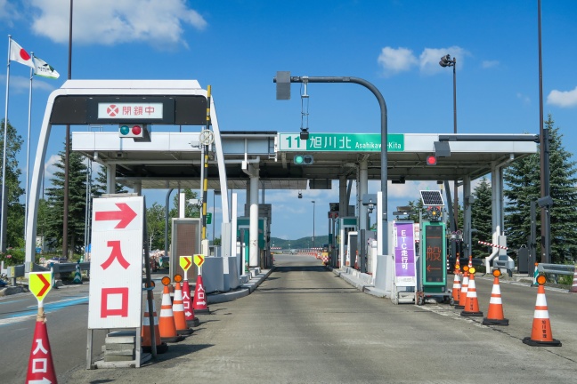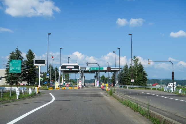 旭川北ICの料金所は3レーンで、通常は一番左のレーンだけが入口レーン、残りは出口として運用されている。撮影当時はメンテや故障など何らかの理由があって真ん中のレーンを入口として運用していたようだ。