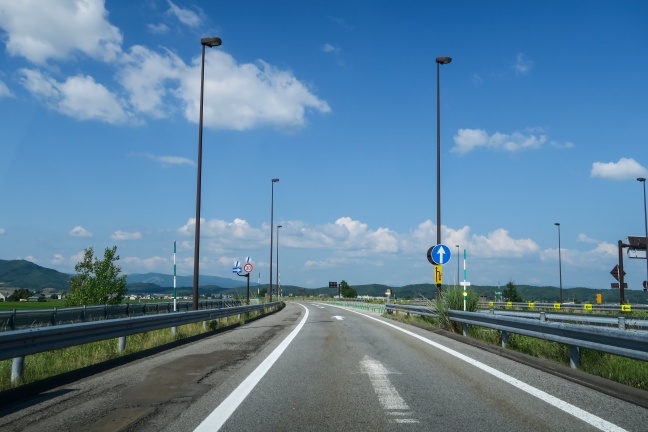 道路はゆるやかにカーブした後料金所に向かう。