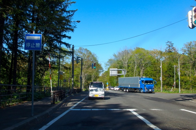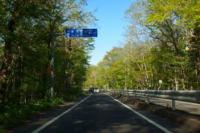 支笏湖を離れ、苫小牧方面へ向かう国道から分岐して森の中を東へ進む。