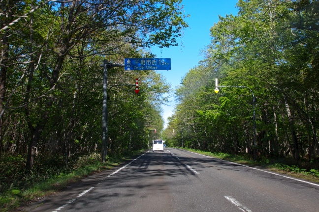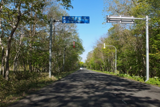 森を抜け道央道の橋をくぐって千歳市街へ。