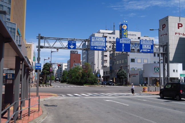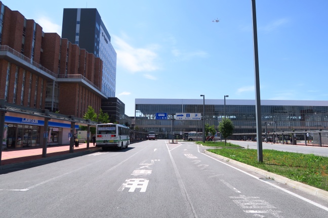 地上に降り、バスタッチ部分を撮影する。写真奥のルートインの足元にr20起点交差点がある。