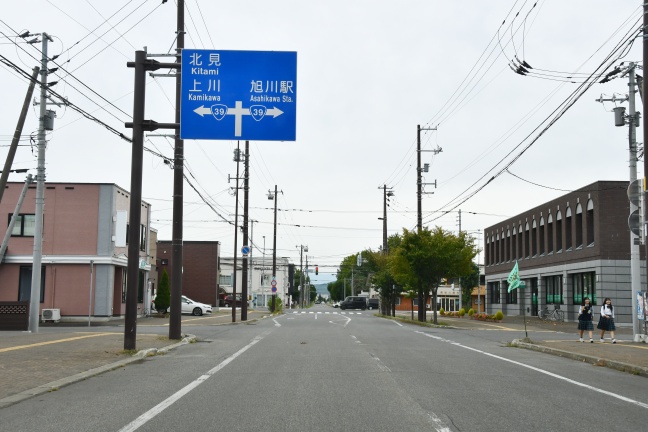 r331の通るJR永山駅前は旭川市永山の端っこのほうで、そこから1kmほど北東にR39を走ると市街地を抜けて田園地帯に入る。逆に市街地方向にR39を走るとすぐにr37鷹栖東神楽線と交差した後、永山エリアのロードサイド店舗が牛朱別川手前まで延々と続く。