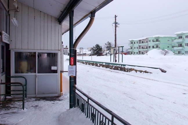 駅舎からホームを覗く。石狩月形駅は札沼線末端部で一番北にある交換可能駅で、これより北、新十津川までは1列車しか入れない閉塞区間であった。それもあって廃線直前の終着駅新十津川駅では1日1往復というまさに最小限の列車運転が行われていた。