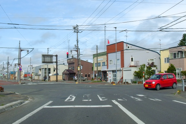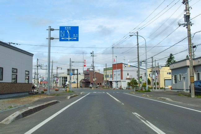 余談だが、r397沿いの字名は少し変則的で、終点R40付近ではr397は大通9丁目と10丁目の境を通っている。農協本所のある一角は停車場通(テイシャバドオリ)である。この写真の右前方の一角つまり農協の西隣は西1条10丁目となる。