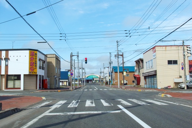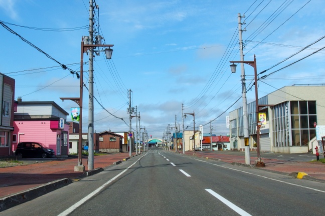 右側に見える大きな建物は北宗谷農業協同組合の本所である。