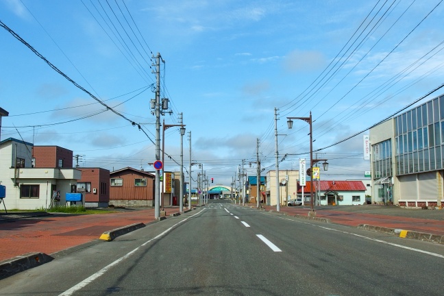r397を豊富駅に向かって走る。全長300m足らずと短い路線なので、突き当りにすでに駅舎が見えている。