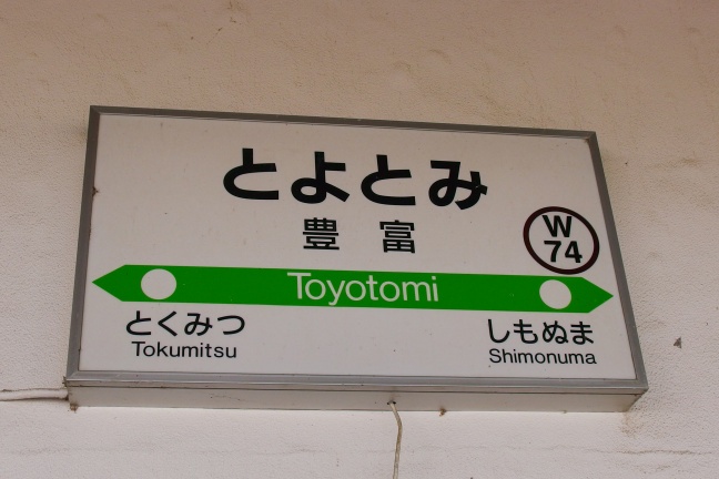 ホームに出て駅名標を捉える。豊富駅の駅番号はW74で、稚内方の隣駅だった徳満駅は2021年3月のダイヤ改正で廃止になった。現在、豊富駅の隣駅となっているのは15km先の兜沼駅となる。