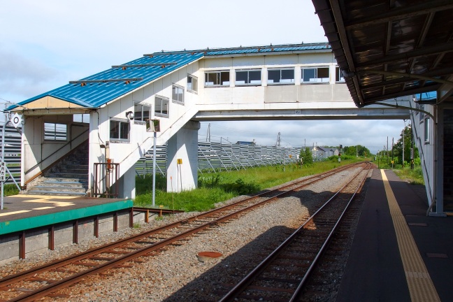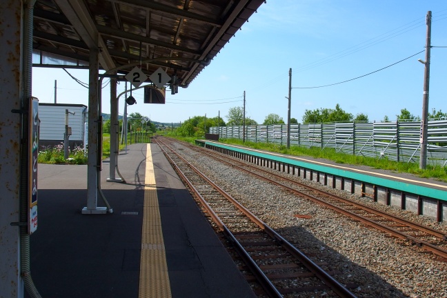 豊富駅は2面2線の対向式ホームを持ち、両者は跨線橋で行き来できる。この写真では手前側が1番線、奥が2番線となる。