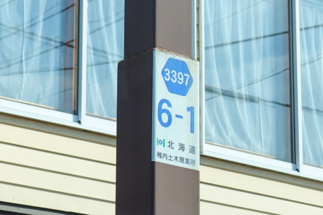 r397全線を通して道道を示す標識は設置されていなかったが、街路灯にはこのように管理番号の記されたステッカーが貼ってある。以上でレポートは終わり。