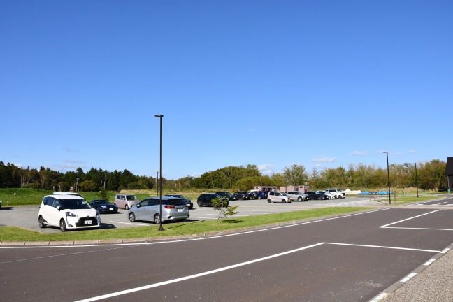 サロベツ湿原センターの駐車場は広大で、第1部で紹介した旧豊富ビジターセンターの頃と比べ物にならない広さである。