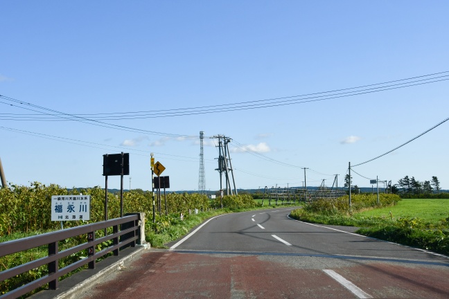 福永川を渡り、引き続き牧草地に囲まれた単調な道が続く。