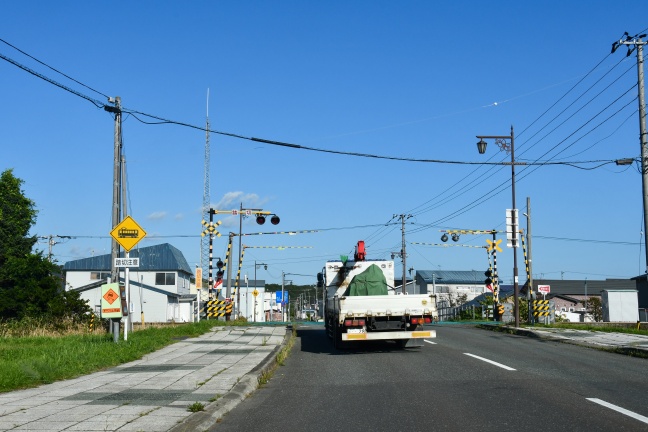 JR宗谷本線との踏切。r444の終点のあるJR豊富駅は向かって左側にある。