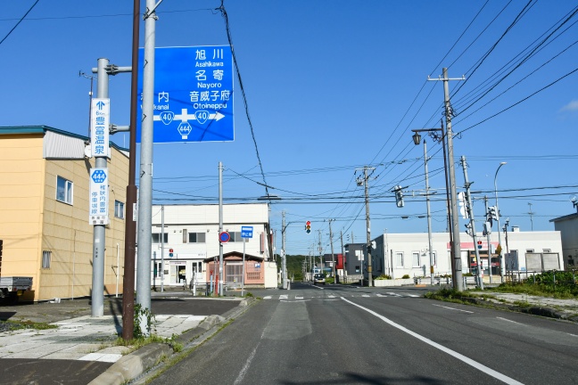 R444の単独区間終点。r444はここを右折してR40との重複区間に入った後、r397豊富停車場線との交点で左折してr397と重複して終点のJR豊富駅に至る。