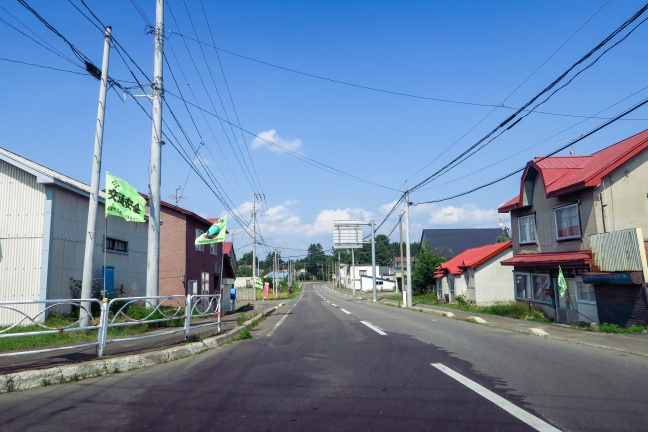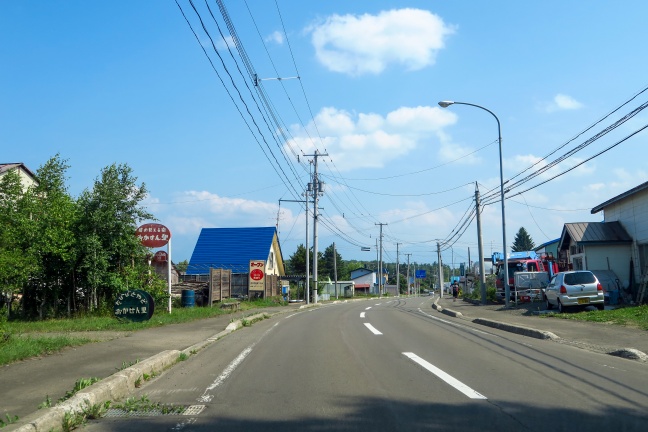 美馬牛市街に入る。市街地は小さく、個人商店はあるもののスーパーやコンビニの類はない。観光地にあるためかカフェや 民宿は何軒かあるようだ。
