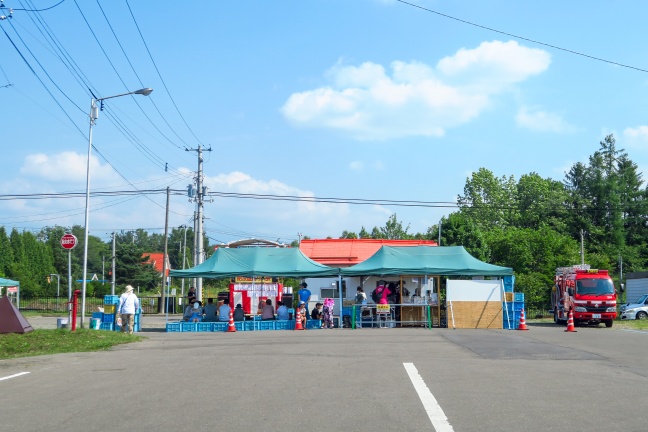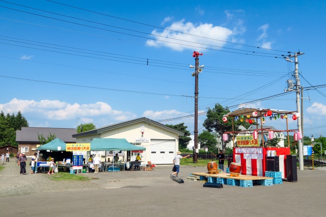 JR美馬牛駅前に向かう。この日は地域のイベントがあったようで、駅の正面にテントが並んでいた。