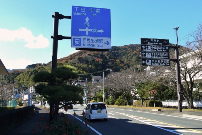 伊豆の海は青く美しい。東京ではもう終わってしまった紅葉もまだ残っている。さぁ、海岸沿いの国道からレポートを始めよう。
