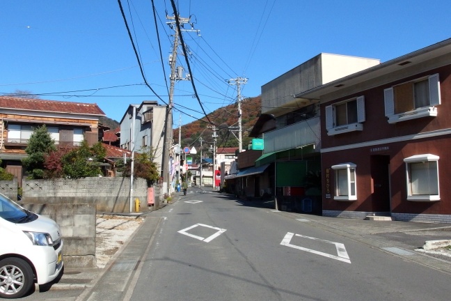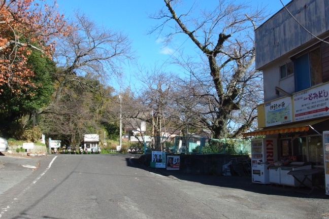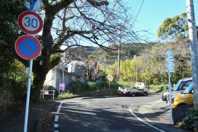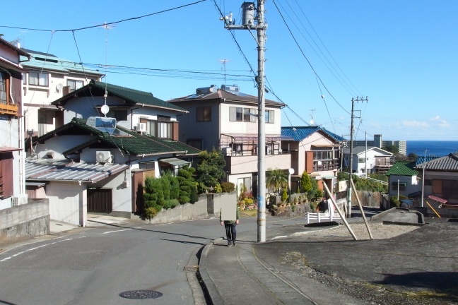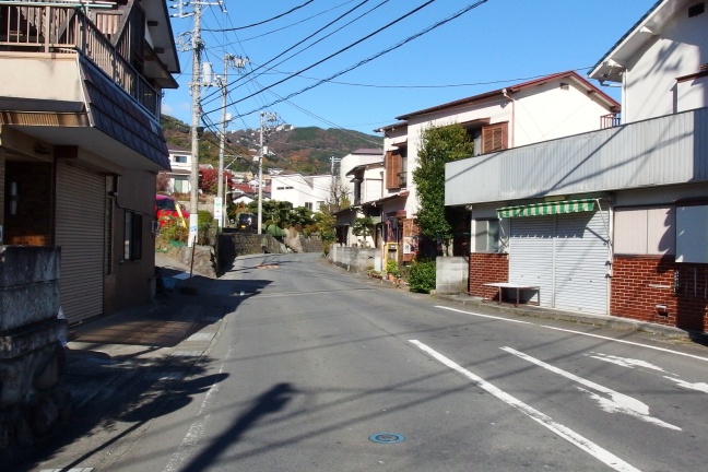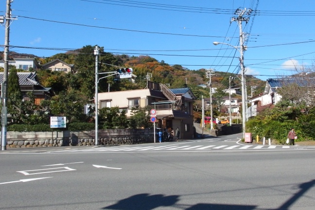 駅前は意外に広く、商店、駐輪(原付が多い)場、駐車場ときちんと完備されている(駐車場は月極)。夏場はおそらく木々が茂って快適な場所ではないかと思う。ここで右側に向かうと相模灘の青い海が見える。
